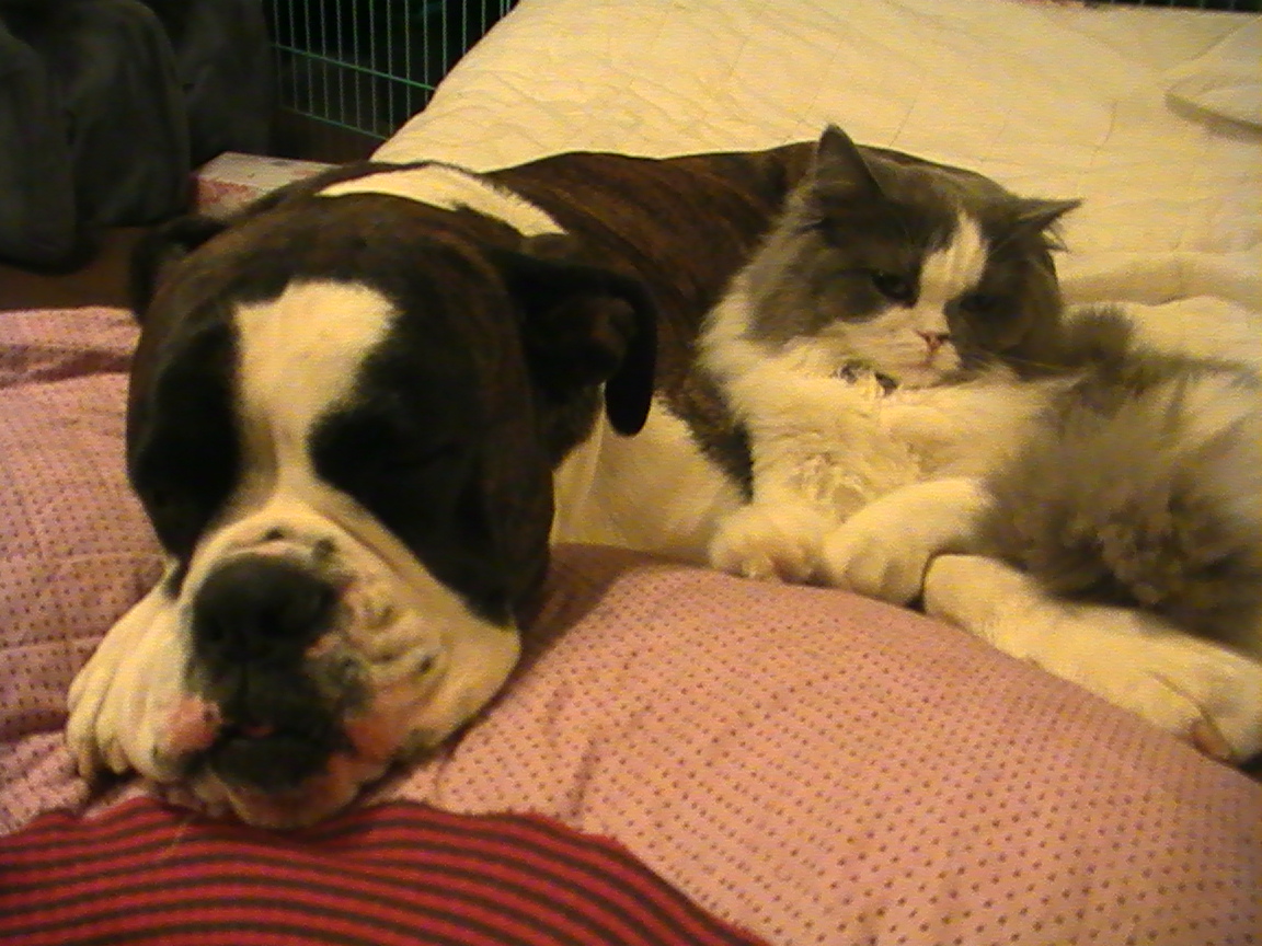 この犬の顔と猫のリラックス度、いいんでしょうかね。