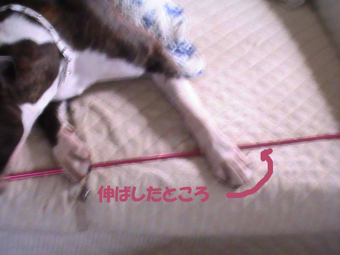 ターゲットスティックは結局使っていなかったのですが、先日のドッグダンス講習会で、このスティックの先におやつを付けて教える方法も習いました。