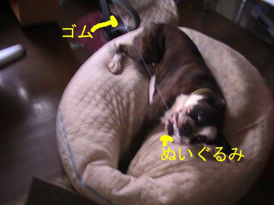 これは壁に打ったフックにゴムひもをつけて、ぬいぐるみをつり下げ、ブンブンして遊ぶと、結構おもしろい。