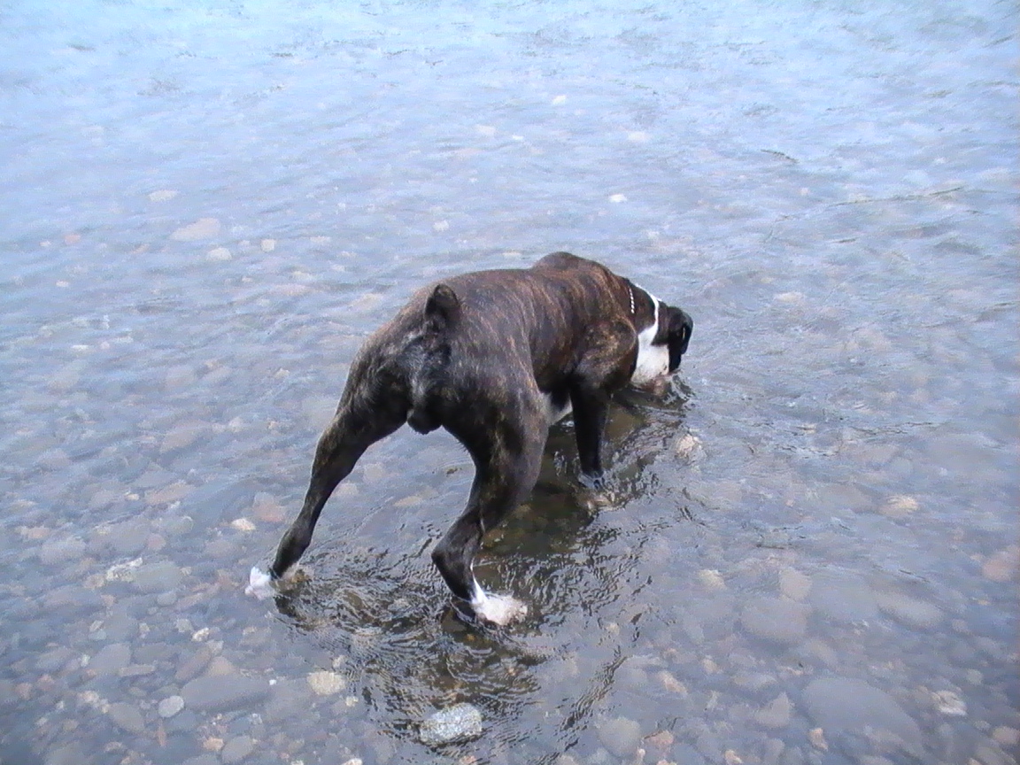 投げた石を川底から臭いで探そうとしてブクブクしたり、楽しいのか楽しくないのかよくわからない感じでした。