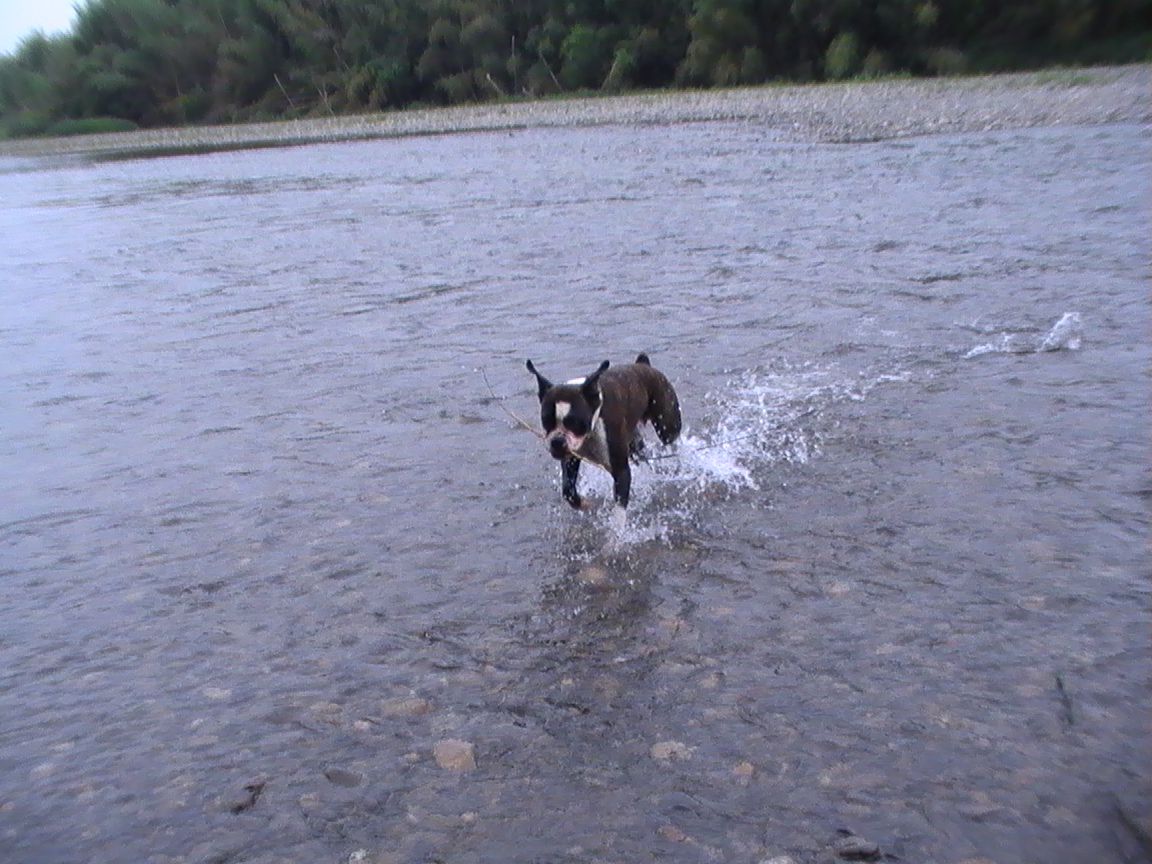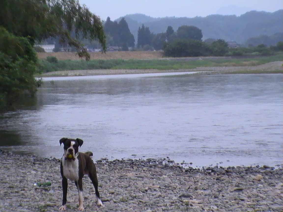 久慈川は一見穏やかそうですが、真ん中はとても流れが速いで、危険です。飼い主が流されては笑い話になりませんから。